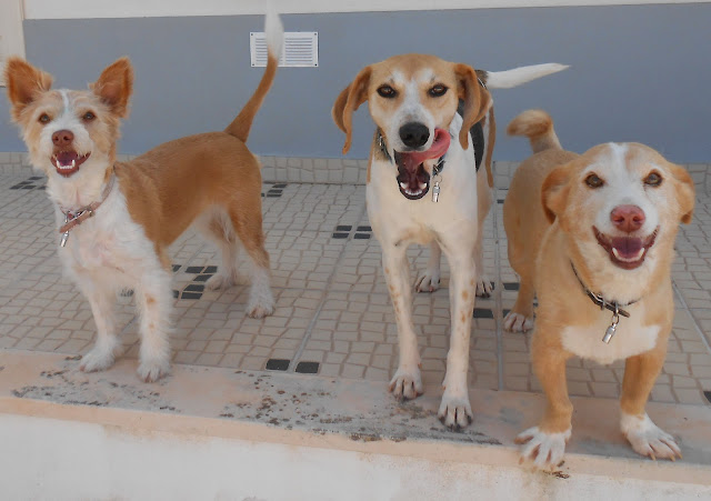 Für 73,63 Euro. Ein Gefühls-Tamm-Tamm heute morgen. 2 x in der Tierklinik angerufen, bis irgendwann endlich die Ärztin zurückgerufen hat. Sie hat das richtige Herrchen nun erreicht. Natürlich ein Jäger. Er wollte das bezahlen, aber hätte kein Interesse an dem Hund, ob wir den denn noch wollten? Ja, sicher. Der wollte am Nachmittag kommen. Es liess mir keine Ruhe, denn wenn der sich das anders überlegt, dann nimmt er den Hund und schmeisst den wieder zu den anderen 20 im Zwinger oder lässt seine Wut über die 74 Euro am Hund aus. Jäger heisst hier: Man hat zwischen 10 und 20 kleine Hunde, die das ganze Jahr in einem klitzekleinen Verschlag leben und für ein paar Donnerstage und Sonntage im Jahr erst in einen kleinen Anhänger oder eine Kiste gestopft werden, dann irgendwo im Wald losrennen und Karnickel aufschrecken sollen. Hunde, die nichts taugen, werden zurückgelassen oder auch erschossen. Dieser Hund war seit dem 13.06.2011! als tot gemeldet. Ich bin dann hingefahren und hab gesagt: "Ich bezahl und nehm den Hund mit." Sie hat ihn wieder angerufen: "Ja, die Senhora ist hier und möchte bezahlen und den Hund mitnehmen!" Da hat er wohl voll den Larry am Telefon gemacht: "Wenn er bezahlt, dann ist das sein Hund!" Tierärztin: "Hören Sie doch zu, ich habe gesagt, die Senhora bezahlt!" Na ja, passt 100% zu dem typsichen Jägerbild. "Bruto" wäre der Mann sagt die Tierärztin, würde ich jetzt mal als "ungehobelt" nett übersetzen. Arsch *sorry*. Tabletten mitgenommen, Hund ins Auto und los. Sie hat dann vor Aufregung gekotzt, egal. Die weiss ja gar nicht was jetzt wieder Sache ist. Ein völlig verängstigter Hund, der sich vor Angst nicht bewegen mag. Im Zwinger hat sie dann hinter die Hütte gepinkelt, rein in die Hütte und jetzt lassen wir sie in Ruhe.