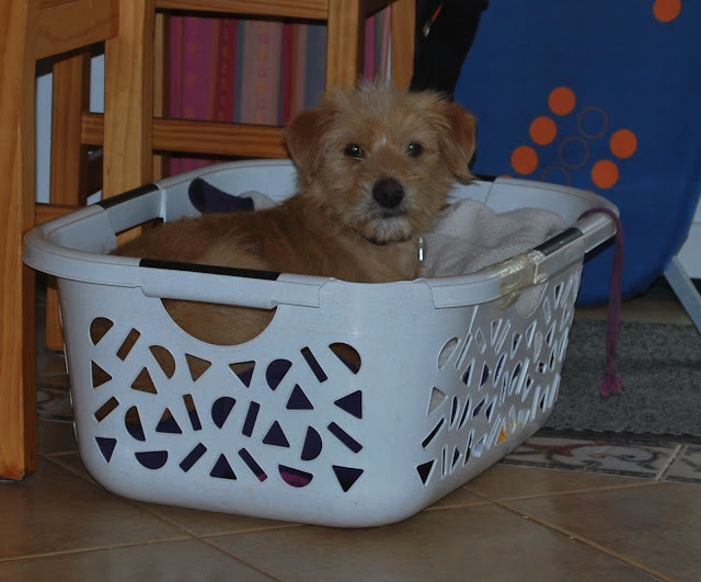 Ronja liegt übrigens auch gerne in Wäsche und in Körben sowieso.